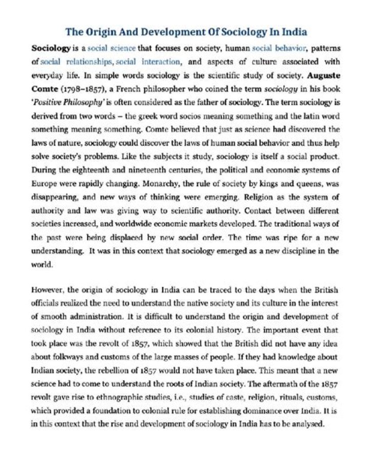 Sociology emerged as a systematic discipline in the beginning of 19th century. Many social and intellectual factors helped in the growth of sociology in the west. Later, a French social thinker and philosopher Auguste Comte (1798- 1857) helped the discipline in its origin and development.