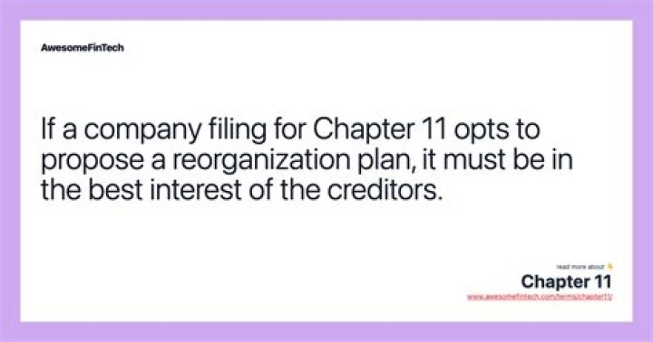 A Chapter 11 bankruptcy reorganization plan lays out how the filer will pay their debt obligations moving forward. It gives the filer the chance to restructure and renegotiate the terms of paying back creditors.
