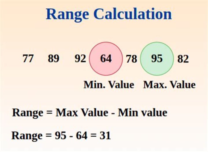 The Range is the difference between the lowest and highest values. Example: In {4, 6, 9, 3, 7} the lowest value is 3, and the highest is 9. So the range is 9 − 3 = 6. It is that simple!